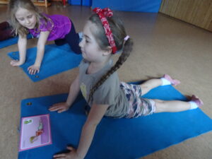 Im Rahmen einer Facharbeit in der Erzieherausbildung wurde in der Regenbogengruppe ein vierwöchiges Kinder-Yoga-Projekt durchgeführt. Über einen Monat hinweg trafen sich unsere Vorschul- und Mittelkinder jeden Montag zu gemeinsamen Yoga-Einheiten.